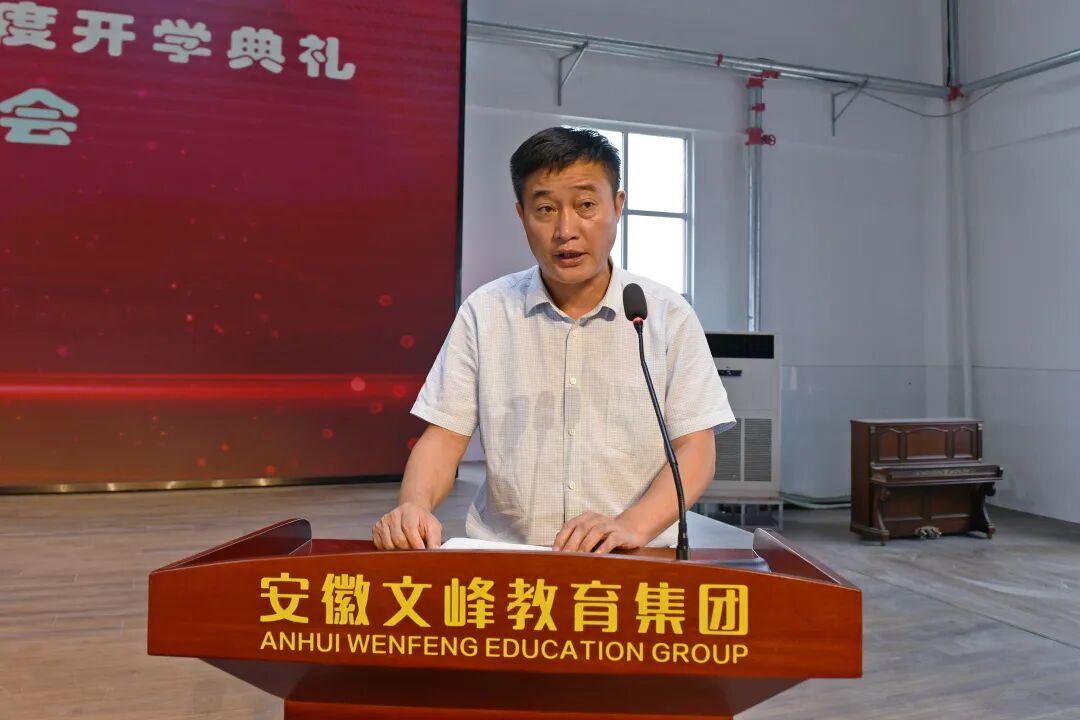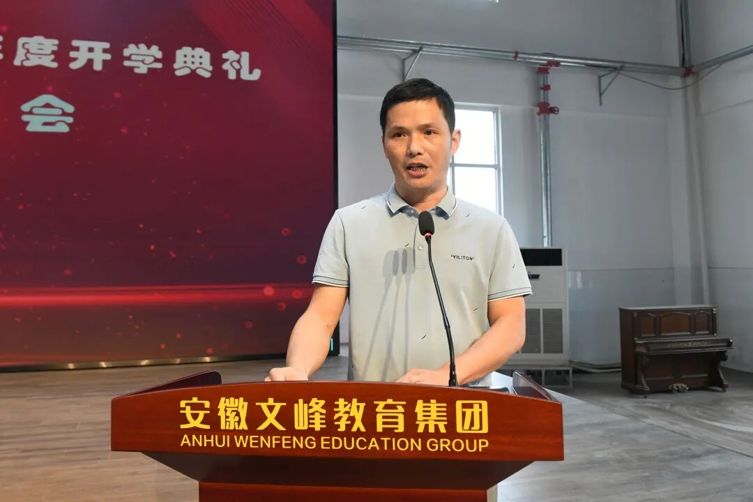 合肥艺术中学党支部书记、校长刘彬致辞。他代表学校党支部、校委会对新入职的各位教师和刚入学的高一年级新生表示热烈欢迎,向辛勤耕耘的全体教职员工和刻苦学习的全体同学致以亲切的问候!
