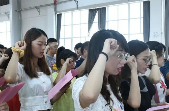 学校的发展,教师是根本,两校新入职青年教师朝气蓬勃,富有热情,他们愿意为教育事业贡献青春,为党育人,为国育才。典礼上,青年教师在教学处主任刘影的带领下庄严宣誓。