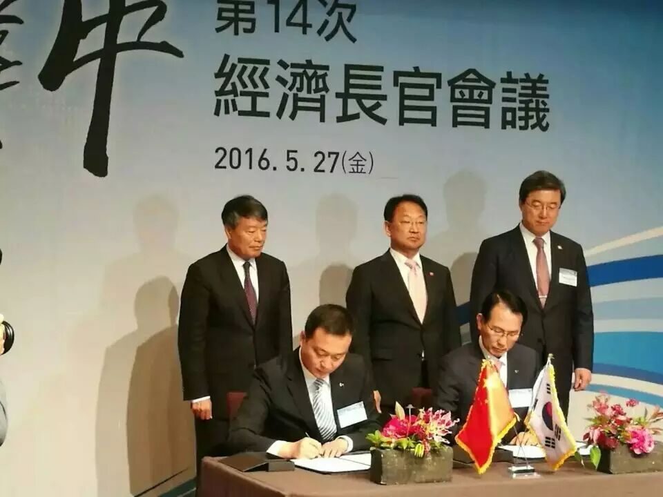 ↑↑↑图为国家发改委主任徐绍史、韩国副总理兼企划财政部部长柳一镐见证中国合肥市与韩国瑞山市签署经济技术合作谅解备忘录。