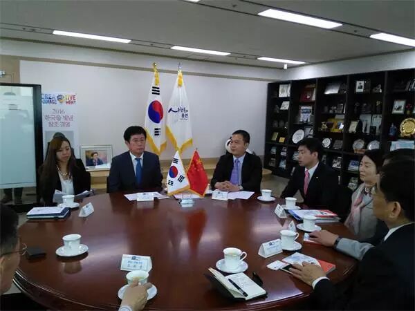 ↑↑↑图为在赵诚惠老师(右2)的陪同下,双边政府就中韩(合肥)国际合作示范区申报工作展开探讨。