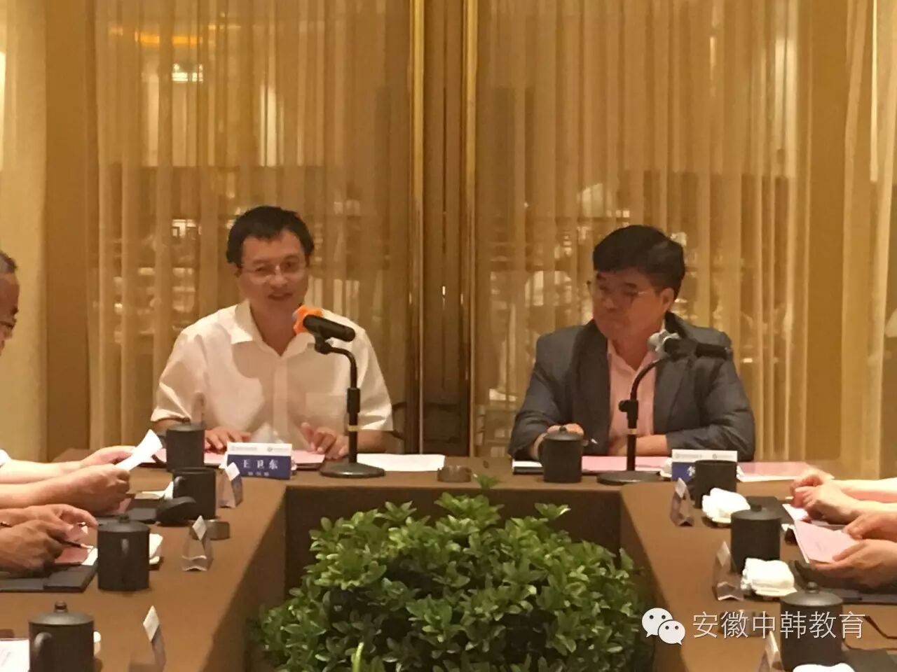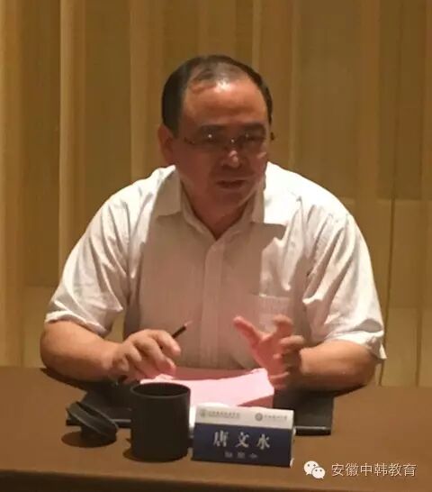 中韩友谊大使、合肥艺术中学韩方校长赵诚惠教授致欢迎词,赵教授首先感谢了唐局长和各位老师能够抽出宝贵时间参加这次签约仪式,并表示非常高兴能够促成这次合作,为合肥艺术中学、为安徽学子打造学习韩语、了解韩国、留学韩国的平台。