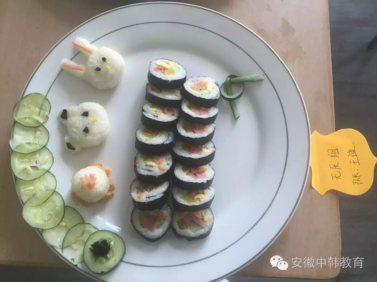 下一步进入了实战阶段,各个团队都进行了明确分工,有去煮米饭的,有去切黄瓜条的,有去煎火腿的,忙的不可开交,嘴里还不停的复习着学会的韩语单词。