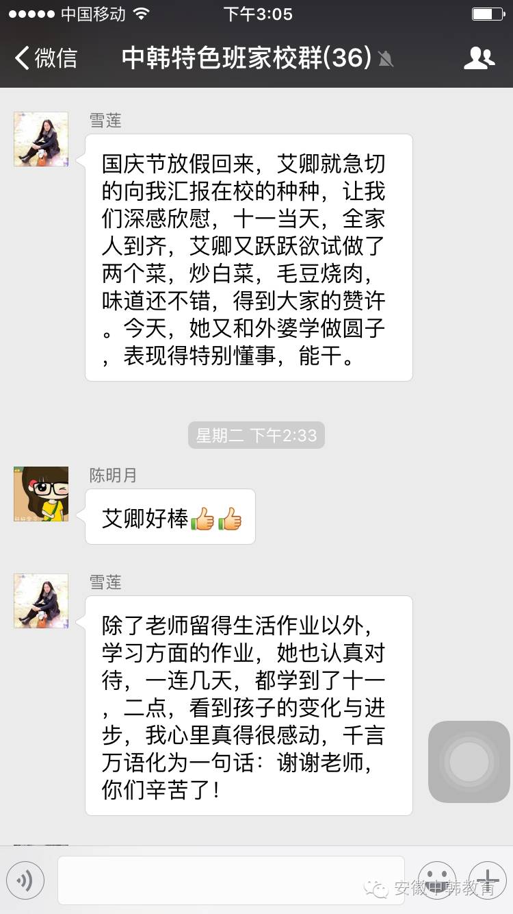 开学一个多月以来,经过引导师、班主任老师、主课老师、外教老师、任课老师以及全体中韩特色实验班学生们的不懈努力,班级面貌发生了可喜的变化。家长们和学生们都有话要说,下面快来围观吧!