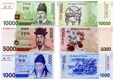 10万韩元:金九,(1876年7月11日-1949年6月26日,号白凡,本贯安东金氏。是韩国历史上的一个传奇人物,著名的韩国独立运动家,被誉为“韩国国父”。