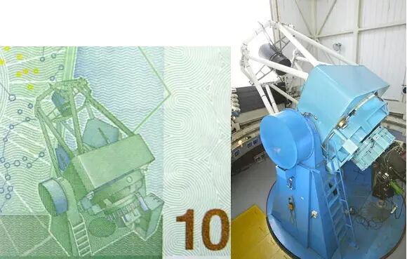 背面:主图是浑天仪,右下角是韩国自行研发的韩国最大的天文望远镜。