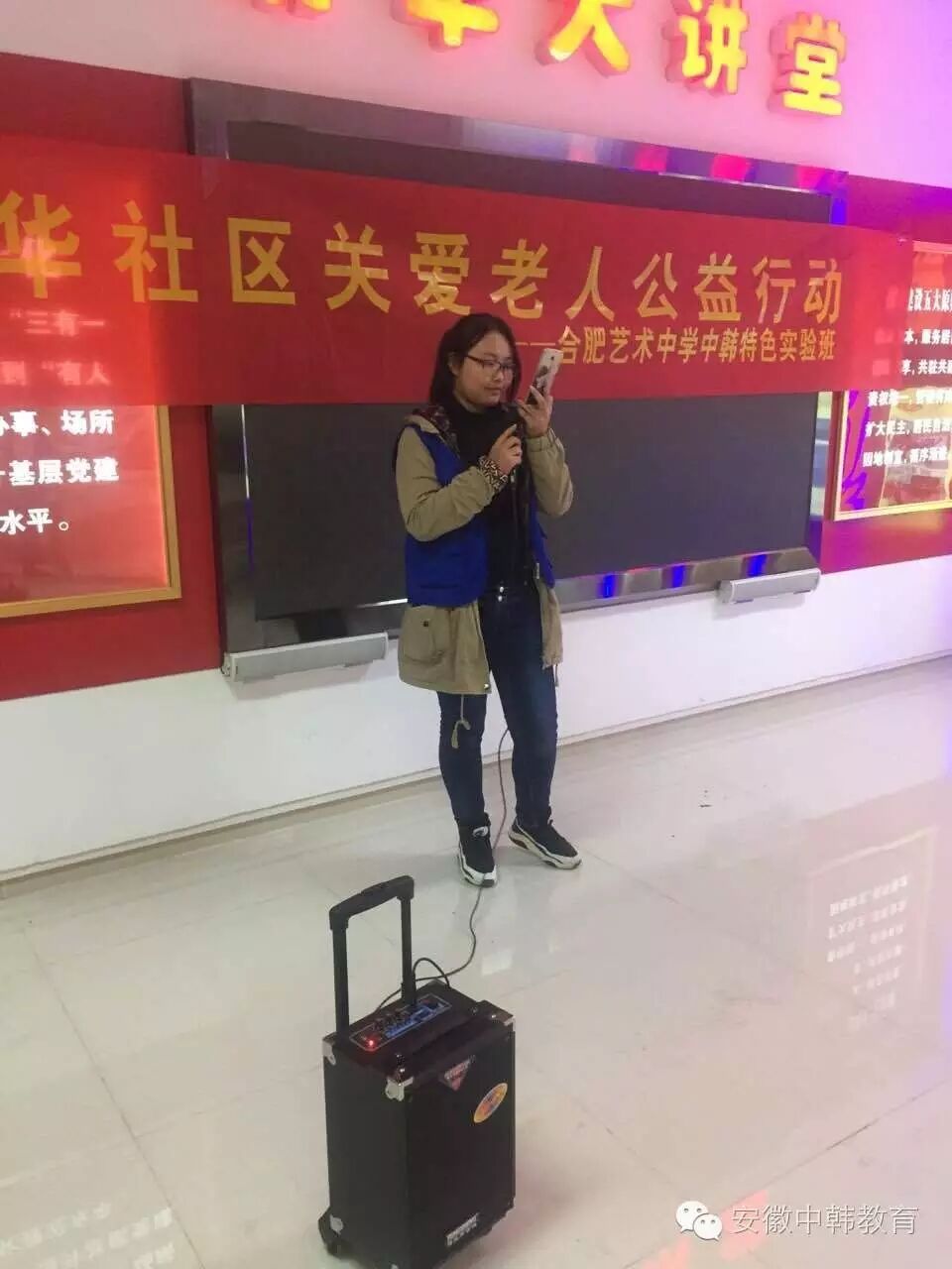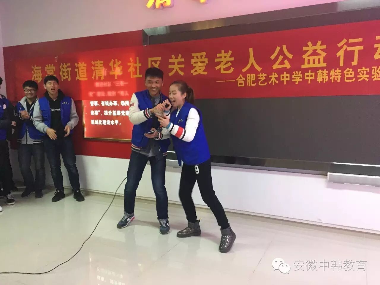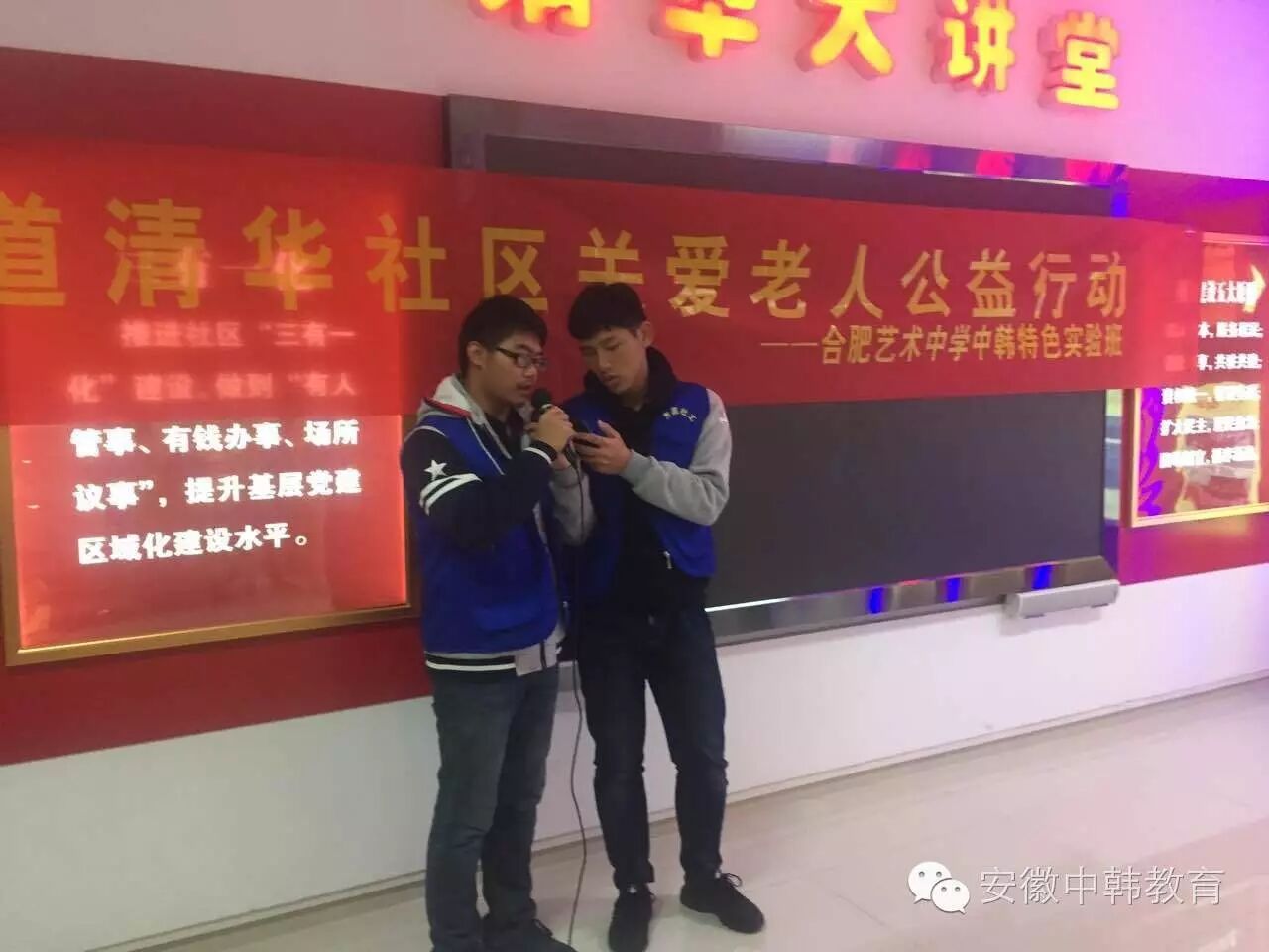 12月3日,晴朗的周六早晨,风凉凉的,但是学生们的心热热的,我们合肥艺术中学中韩特色实验班组织的关爱老人暖冬公益行动在清华社居委即将拉开帷幕。