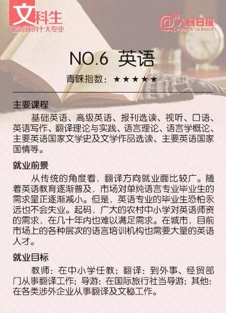 最受文科生青睐的10大专业及就业前景 【人民日报】