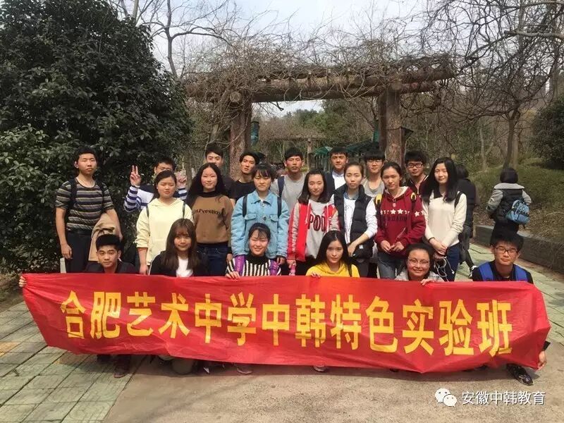 2017年3月11日,合肥艺术中学中韩特色实验班迎来了一次独属于他们的迎春旅行。活动内容分为两大项:第一,走进自然,以爬山(大蜀山)的方式,感受大自然的美丽;第二,观赏动物,以游览动物园(合肥野生动物园)的方式,和动物们有了更亲密的接触。这次活动的开展,是为了让学生可以劳逸结合,秉承公益,知行合一。