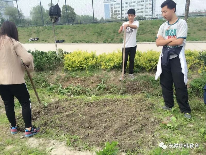 耕种体验课是教育公益课程的有机组成部分,在安徽中韩教育中心校合肥艺术中学里,开辟一块空地,让学生们体验蔬菜耕种,目的其一是返璞归真,回归田园,寻找内心的宁静;其二是体会劳动者的不易,同时让学生们身体力行,明白“种瓜得瓜,种豆得豆”、一分耕耘一分收获的道理。