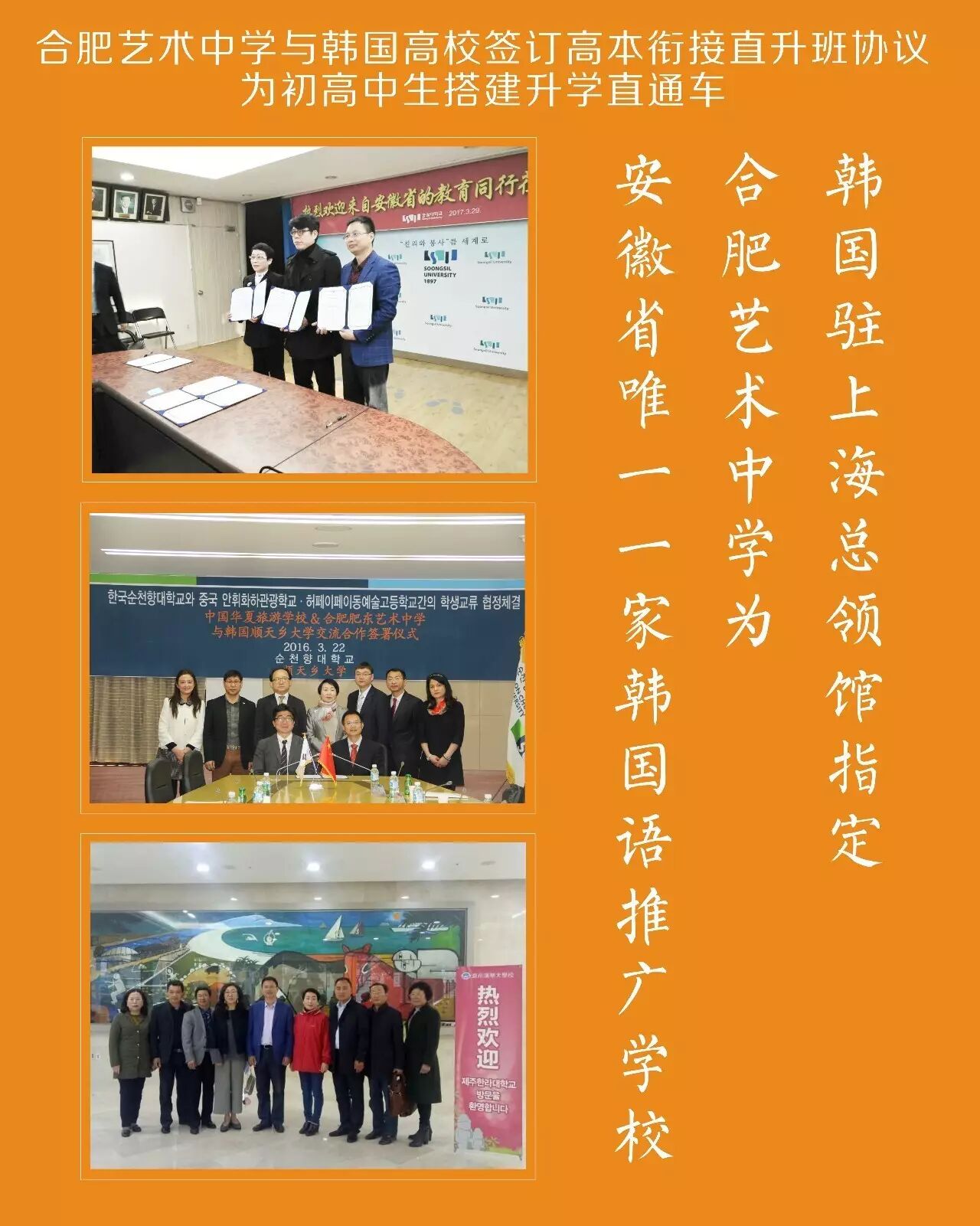 2017年3月崇实大学与合肥艺术中学签订《崇实大学金融IT直升班》协议。