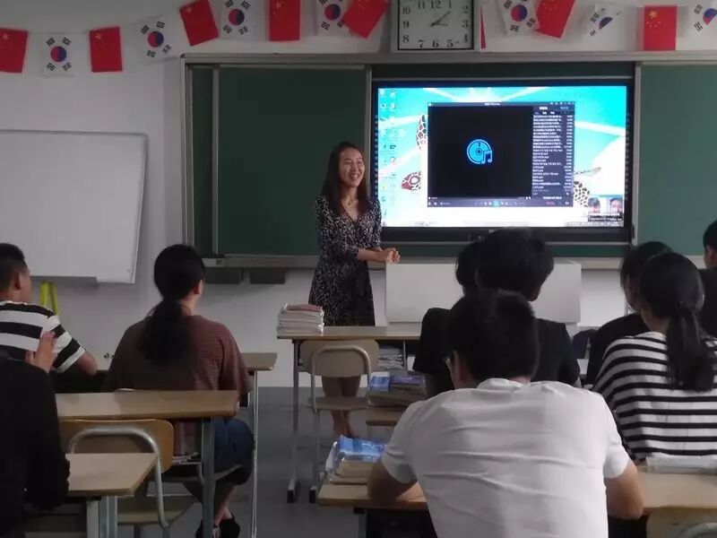 金老师走进教室,用韩语跟学生无障碍沟通,学生们彬彬有礼,积极回应。对学生关于韩国留学生活方面的种种疑问,金老师都耐心地作出回答。金老师说:“韩国的大学生活总体是很美好的,但你们也会遇到困难和挫折,不要害怕困难,困难会让你们成长得更快!大学生活还是很值得期待的,而我期待今年8月在顺天乡的校园里与你们相见!”
