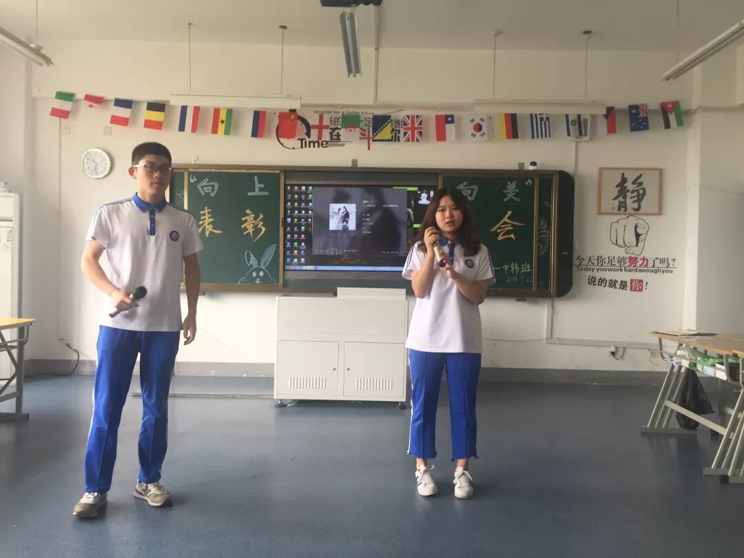本次总结表彰分享大会由中韩特色实验班的丁子洋、葛彬两位同学共同主持,他们认真准备,积极对待,也是本次活动最默契的搭档。