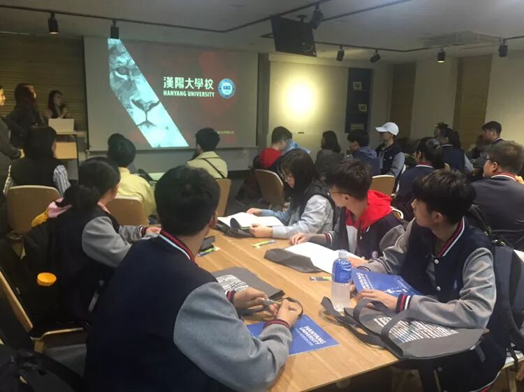 参观完校园,汉阳大学国际交流处姜允伊处长和老师热情接待了我们。在我们看完汉阳大学宣传片后,老师还为我们详细介绍了汉阳大学的专业和申请办法,并安排目前汉阳大学大三在读,来自安徽的中国留学生给我们同学做了分享,鼓励我们努力学习,期待我们更多人能够进入汉阳大学深造。