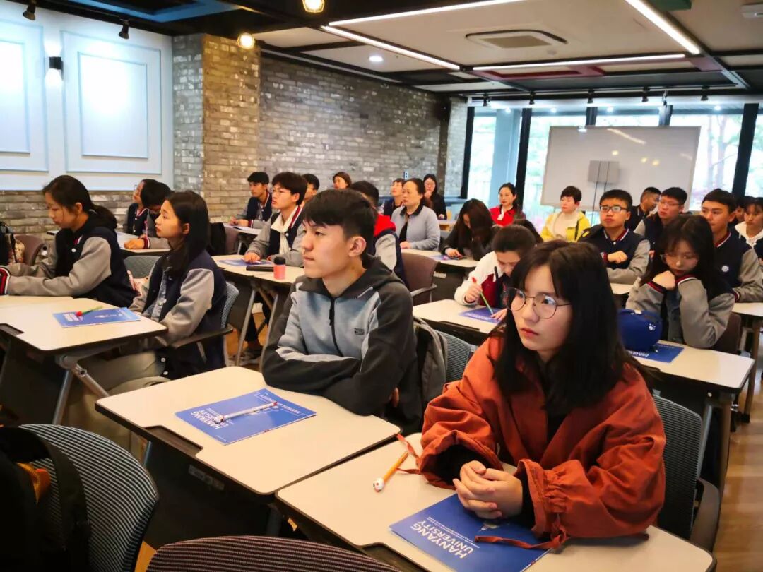上午,我们参观了汉阳大学的ERICA校区(产学研集群区)。汉阳大学国际交流处尹处长和老师热情接待了我们的学生和家长,详细介绍了学校的情况,并带领我们参观了学生教室、宿舍、机器人实验室和创业项目实习场地。