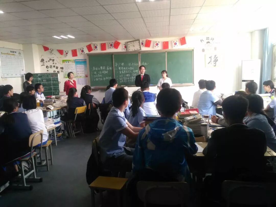 李景职院长一行走进中韩特色实验班与同学们做了精彩的演讲。院长在演讲中说到韩国是一个非常重视教育的国家,也更加注重每一个人的全面发展。随之他也说到他自己正因为父母很重视教育,将兄弟6人都分别培养成了4个博士,1个硕士和1个学士,也因此改变了家庭的经济情况。