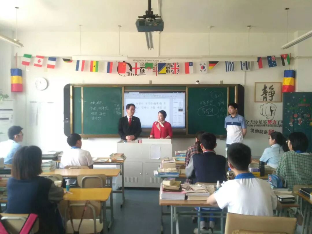他还说到他自身也有出国留学的经历,至今他还很怀念和感激那段在国外留学的时光,是留学让他变得更加独立,更加坚强,更加理解和包容世界各地的文化,同时也期待中韩特色实验班的同学们都能珍惜当下,努力学习,争取早日走出国门,学习和了解国外更多的文化和科学技术,成为中韩两国交流与合作的桥梁和使者!