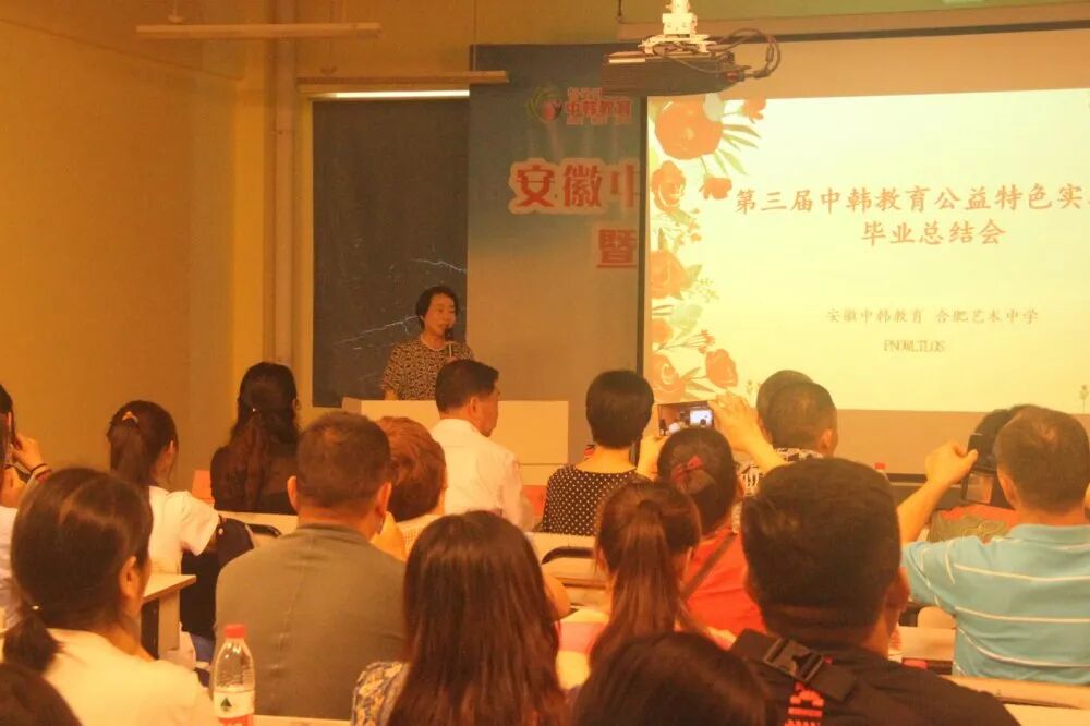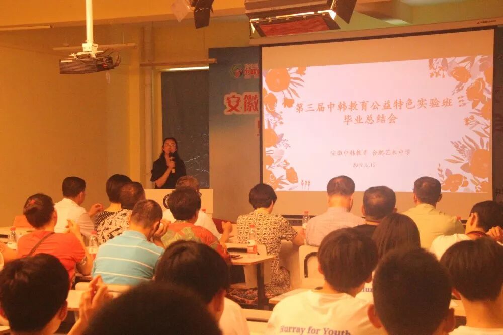 家长代表张雅琪妈妈在发言中说到:感谢学校、感谢所有老师辛勤付出,让孩子在中韩教育公益特色实验班的土壤上蜕变成了有目标、有独立思想和人格的知识青年。希望你们无论身在何地,取得多大的成就,永远要感恩母校的培养,不忘母校的教诲,怀揣公益,一路向上向美.......