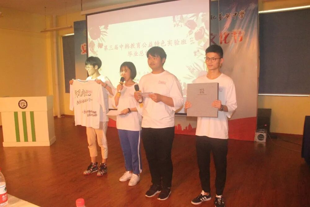 最后,汪虹副校长将中韩教育公益特色实验班一年的情况做系统汇报,进一步强调中韩特色实验班的“教育公益”之魂,同时也对所有教师的辛勤付出表示肯定,并对同学们提出几点希望,希望同学们在未来要做一个真实的人,有爱心的人,有格局的人,热爱生活的人。希望大家继续传承和发扬教育公益的精神。人生路上,最后回到公益,行动去实践公益,在公益中成就和升华。