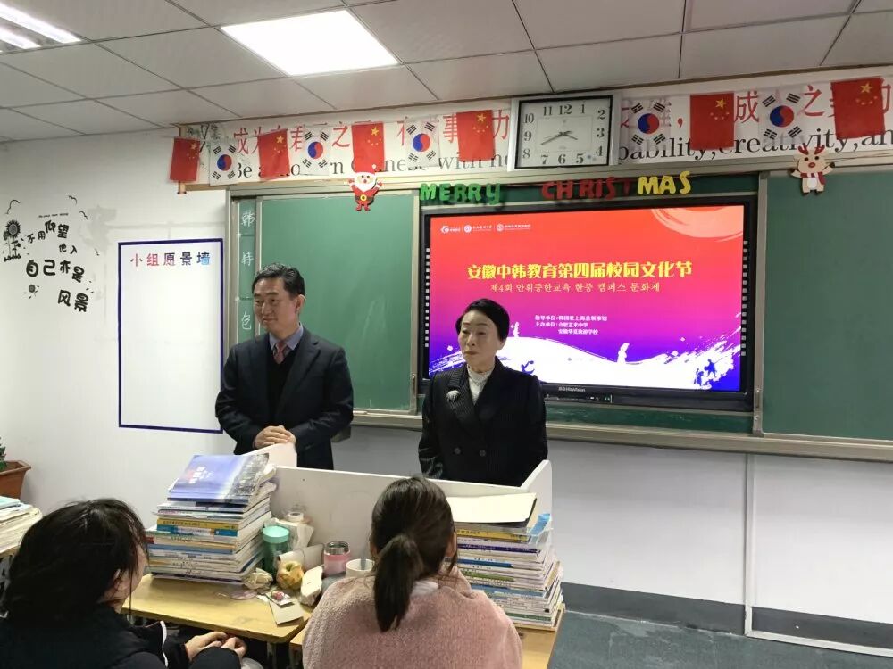 12月21日,安徽中韩教育第四届校园韩国文化节在合肥艺术中学成功举办。韩国驻上海总领事馆领事李荣燮,安徽中韩教育集团理事长、合肥艺术中学韩方校长赵诚惠,安徽中韩教育集团、合肥艺术中学副理事长王卫东,合肥艺术中学副校长汪虹等出席了会场。